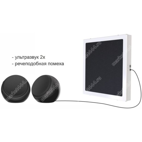 | Типы генерируемых помех | 2 вида ультразвуковых помех; акустическая речеподобная с ""белым"" шумом (при подключении внешних колонок) |
